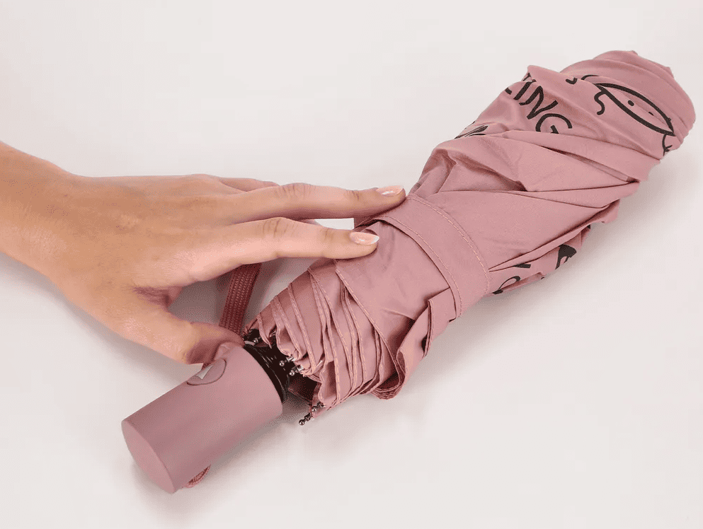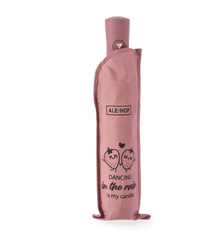 Paraguas plegable rosa – Dancing in the rain is my cardio